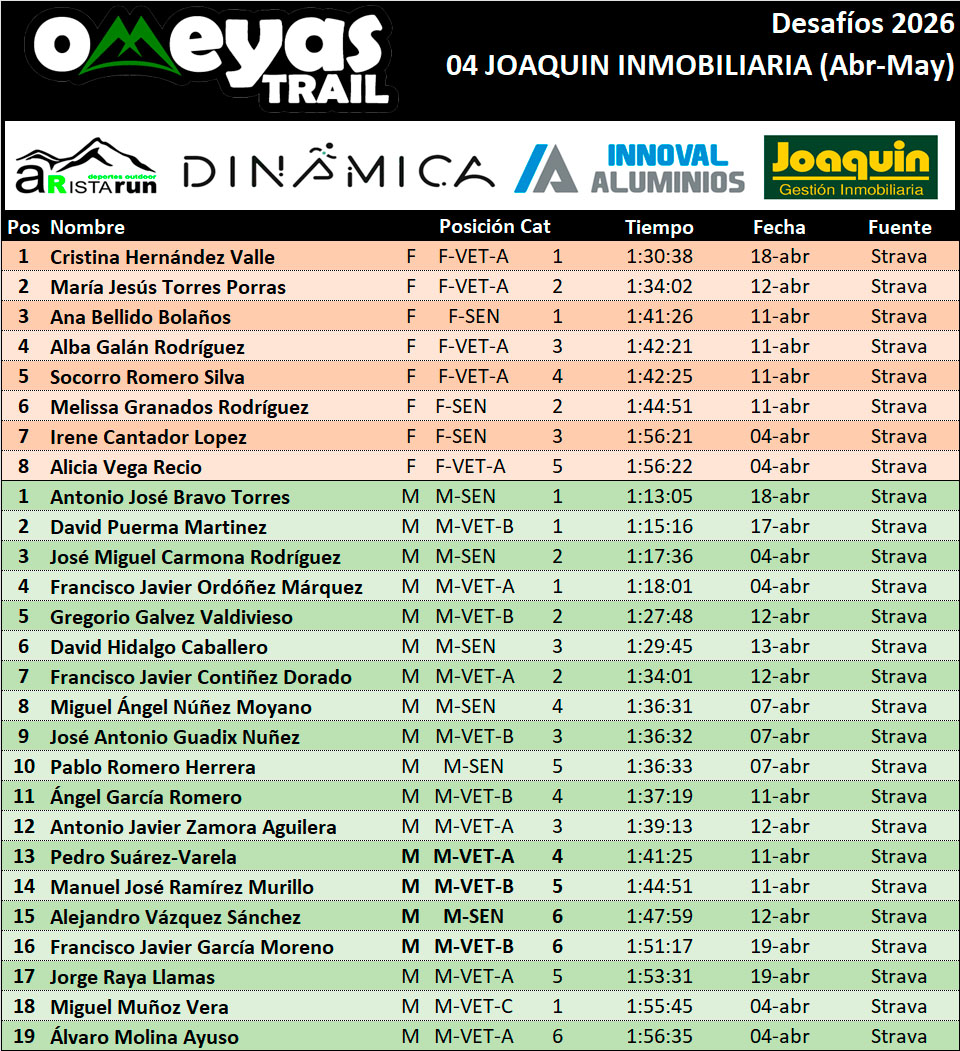 Clasificación actualizada el 19-04-2026
